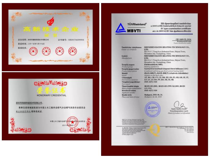 15年的奮斗歲月,始終秉承專業鑄就精品的理念,贏得了用戶和業內的廣泛認可,各種榮譽和光環紛至沓來,企業先后榮獲燃氣壁掛爐十大品牌、歐盟CE認證、國家高新技術企業等諸多榮譽。